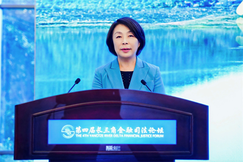 上海金融法院院长赵红在论坛上以强化金融司法保障,助力绿色可持续发展为主题作了主旨演讲。指出,绿水青山共为邻,绿色日益成为长三角高质量发展的底色,金融在助力绿水青山向金山银山加速转化中的作用进一步凸显。加速的阶段要平稳、转化的动能要强劲、发展的成果要持久,都离不开金融司法的助力和护航。结合上海金融法院服务保障绿色金融的司法实践,赵红分享了金融司法服务保障绿色金融发展的经验做法:一是坚持金融服务实体经济,引导金融活水流向绿色领域二是支持绿色金融守正创新,打造促进低碳转型的营商环境三是加强绿色金融协同治理,防范新兴金融市场系统风险